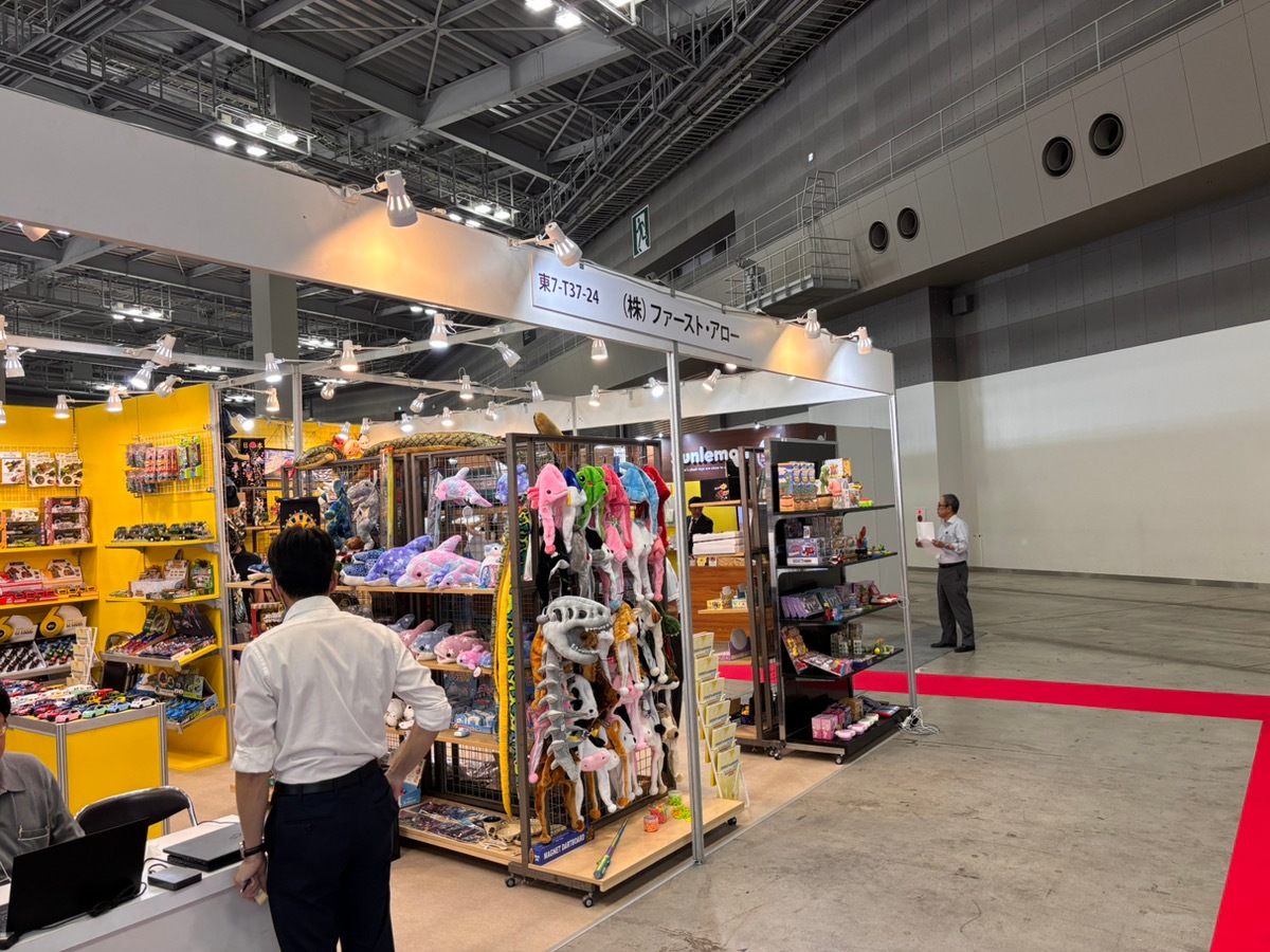 弊社は2025年9月3日(水)〜5日(金)の3日間、「第100回東京インターナショナル・ギフト・ショー秋2025」に 出展いたしました! 当日ブースまでご来場いただきました皆さま、ありがとうございました! 当日の展示会のご様子をご紹介いたします☀ 新商品・人気商品 ネットで話題沸騰中の「陽気なサボテン ダンシングアミーゴ」、「ゆらゆらイカちゃん」や人気が続いている商品★ 棚の3列目、4列目には新商品も並んでいます! ミニカー・RCカー 1/18スケールのカッコイイミニカーが目立つ!ほかにもカラフルなミニカー多く取り揃えています🚙 RCカーも大きな1/14スケールも取り揃えております! 光るおもちゃ・ パズル・ 楽器・雑貨 自転車につけてかわいいチャリぶた、アヒル団長、お手軽にストレス発散!パンチングボールの生活雑貨 仮装やパーティなどのイベントにもってこいのファッション雑貨揃っています! 手軽に脳トレ!ルービックキューブもたくさんございます。 光るおもちゃはリング状のものから手のひらサイズのボールを多く取り揃えております! 和雑貨・バッグ・帽子 和雑貨も新商品が盛りだくさん! 起き上がり小法師の仕組みで傾けても起き上がるコロたっち!日本のシンボルたちが仲間入りいたしました🌸 帽子も日本の文字が刺繍されたデザインキャップが種類豊富にございます🧢 バックも種類豊富!バカンスバックは種類がリニューアルし、新しく2種類増えました! 昆虫・恐竜・動物 昆虫類の商品が新たに仲間入り!度々話題になるたまごシリーズもございます! 昔ながらのレトロなウォータゲーム年齢問わず人気です★ ぬいぐるみもイルカやジンベエザメなど夢色シリーズに触るとふわふわなマシュマロぬいぐるみシリーズもございます! キーホルダー・スクイーズ・バラエティー雑貨 アクアリキッドチャームや手持ち無沙汰解消キーホルダーが盛りだくさん★ 大きな声で叫ぶびっくりチキンも種類豊富にございます! 今回も新商品と共にたくさんの玩具商品を展示いたしました! 出展商品以外にも豊富に取り扱っております!カタログにも掲載されておりますので 是非チェックのほどよろしくお願いいたします! 以上、展示ブースと取り扱い商品の一部を紹介させていただきました!最後までお読みいただき、誠にありがとうございました! よりよいサービスをみなさまに提供できるよう、改善・向上して参ります。今後ともファースト・アローをよろしくお願いいたします!