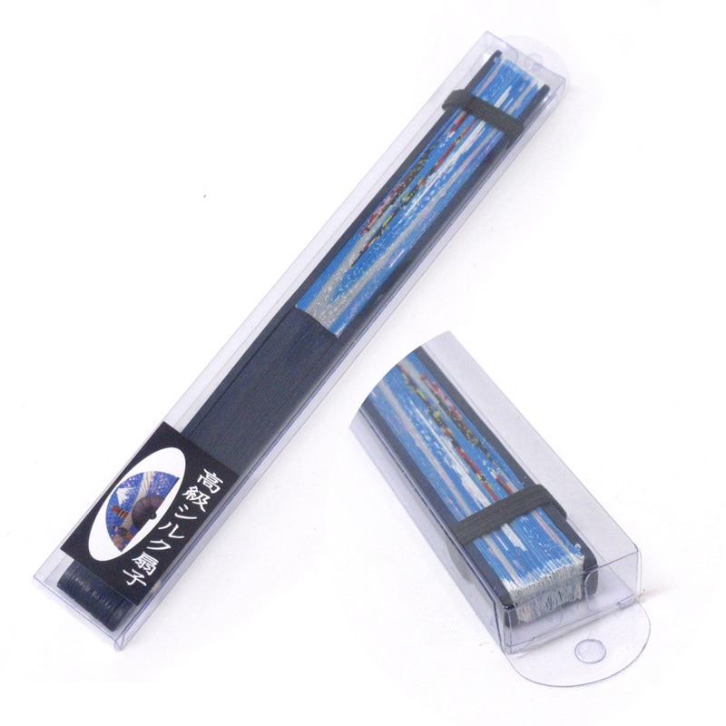 高級シルク扇子 富士山・舞子・五重塔 ブルー ラメ入り No.504-331