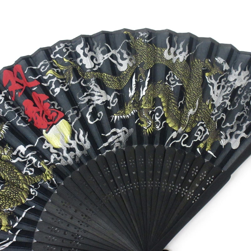 高級シルク扇子 2色骨 龍虎とお城 No.504-320