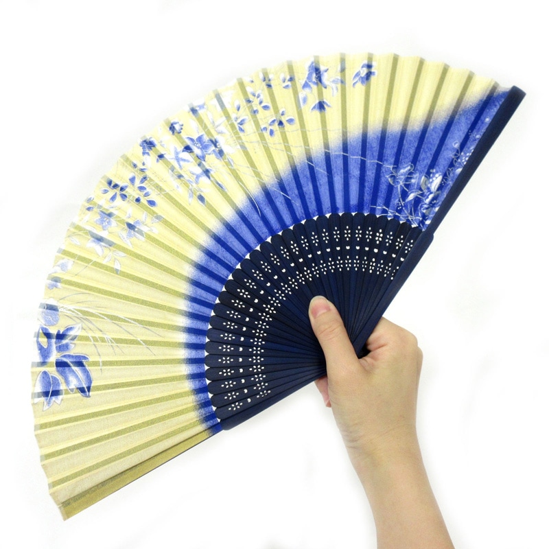 色鮮やかに彩色されたシルクで作られた軽くて丈夫な扇子です。