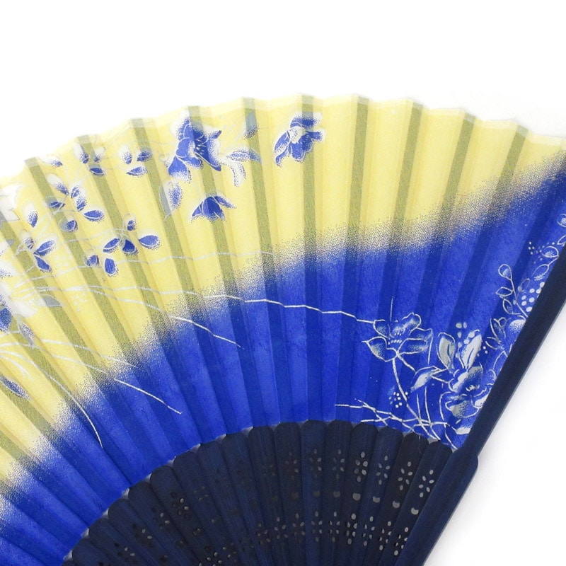 高級シルク扇子 花と蝶 ブルー No.504-576