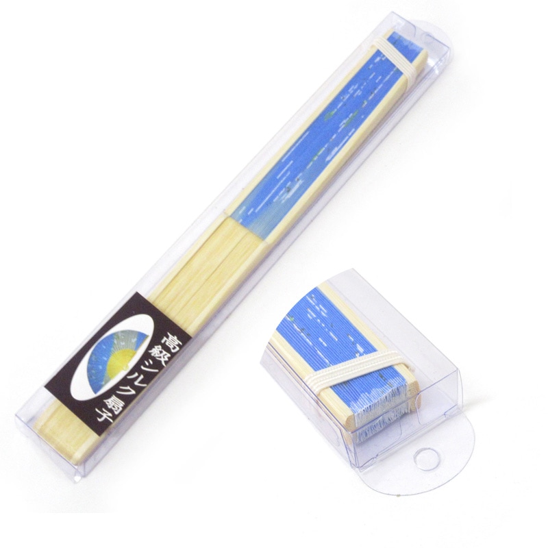 高級シルク扇子 月とうさぎ ブルー No.504-731