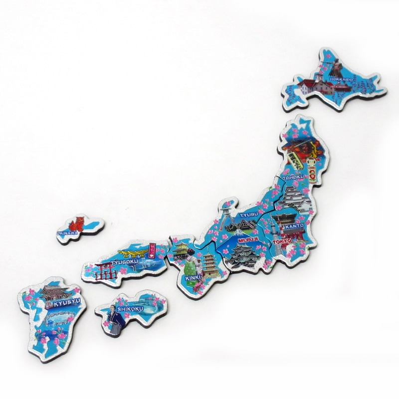 日本の名所が集まった日本地図のパズルマグネット♪