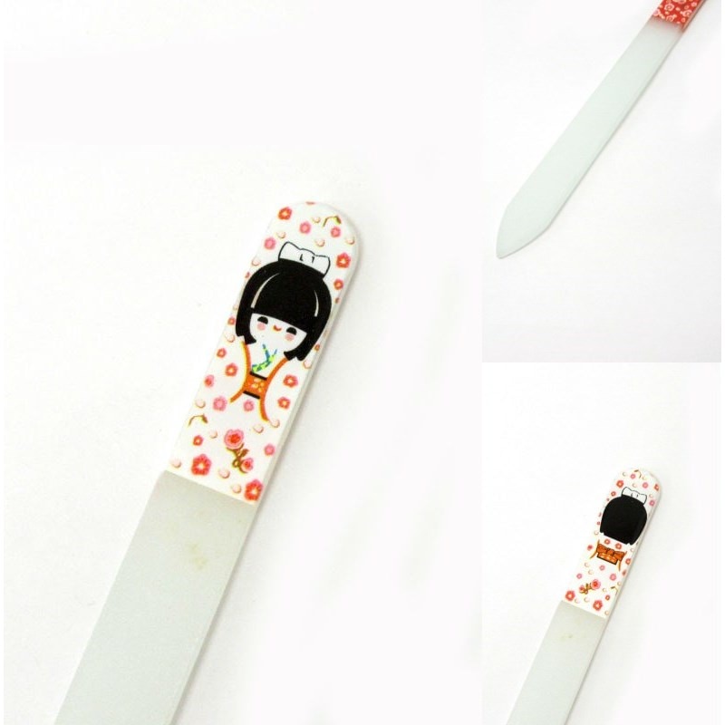 ネイルケアグッズ こけし 着物 ガラス製爪やすり ホワイト No.303-623