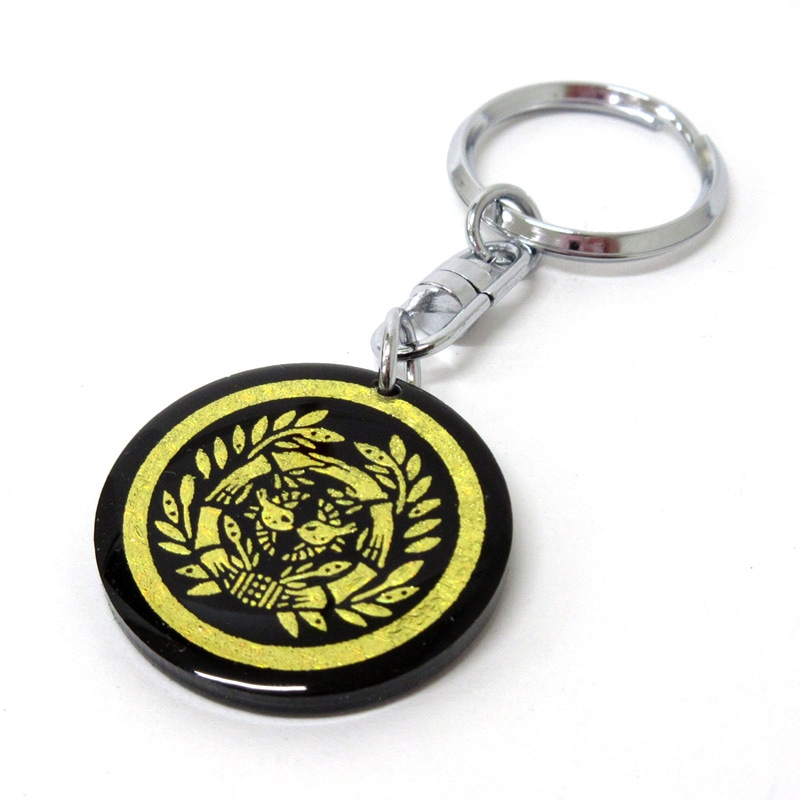 螺鈿調のキラキラ輝く武将家紋のキーホルダー☆