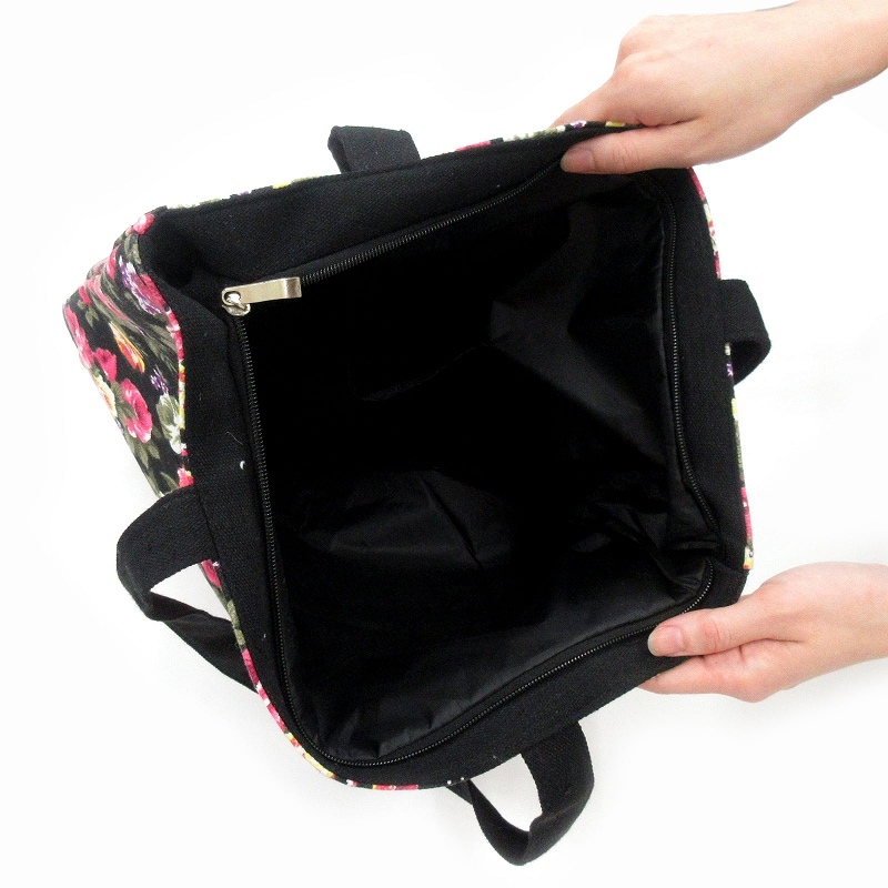 本体サイズ:44.0×45.0cm(マチ部分8.0cm) 58.0cm(取っ手部分)本体量:203g素材:綿60%、ポリエステル40%