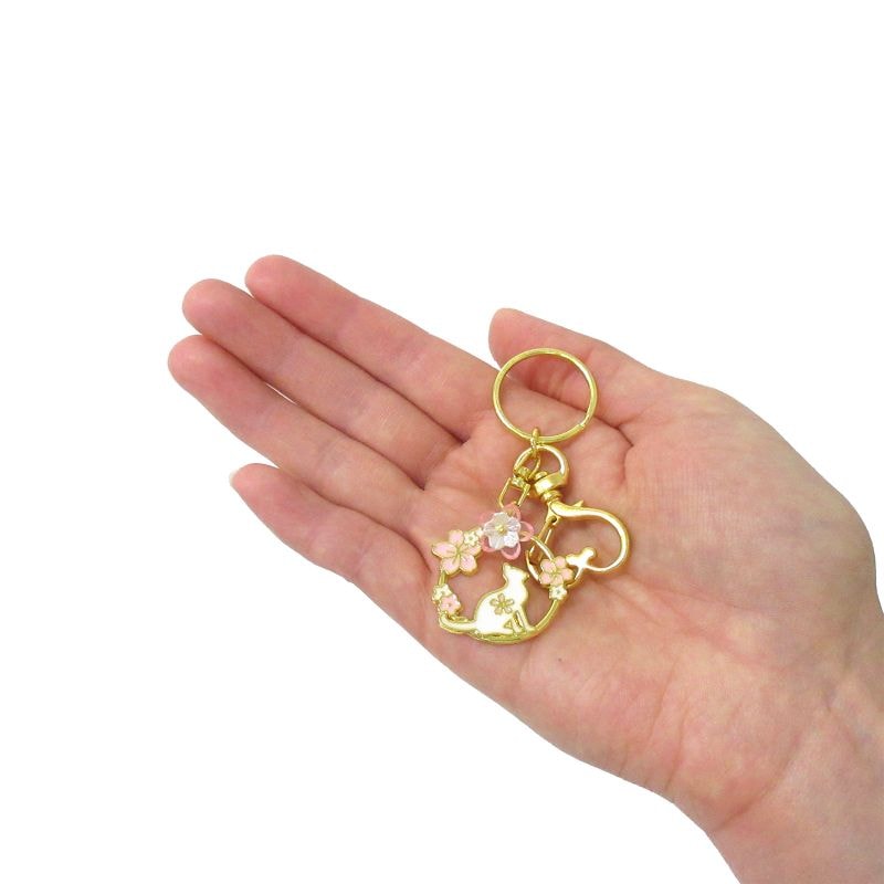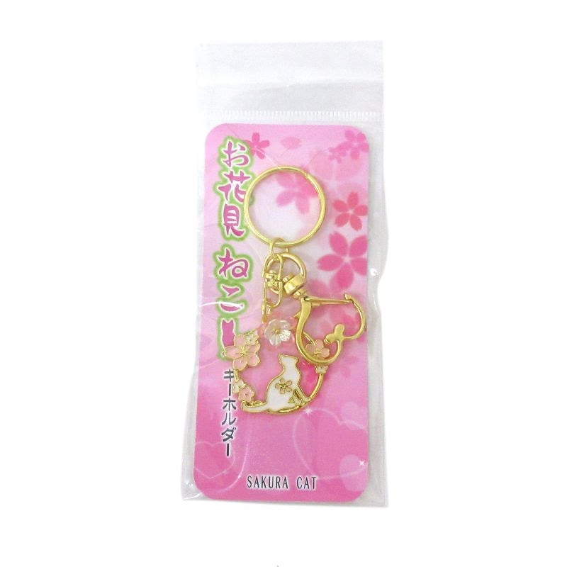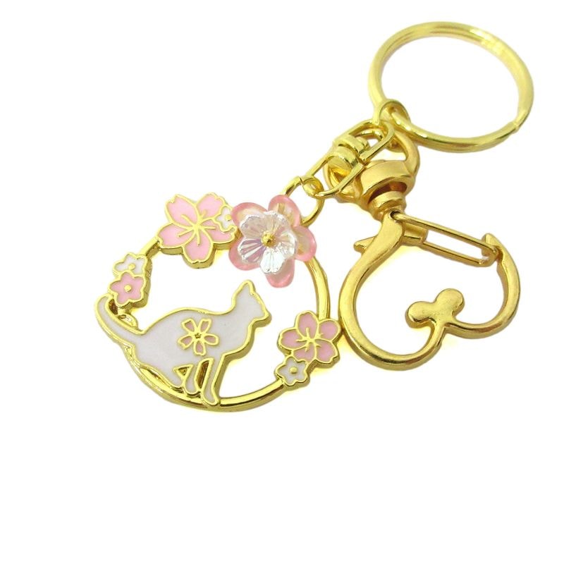 お花見 ねこキーホルダー ゴールド No.603-060