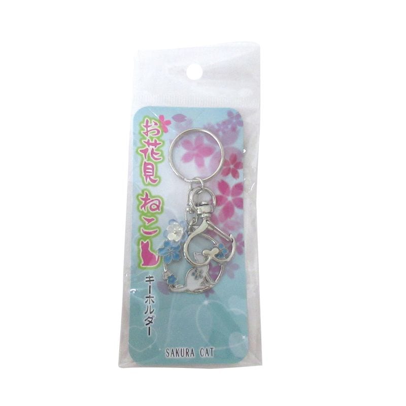 お花見 ねこキーホルダー シルバー No.603-061