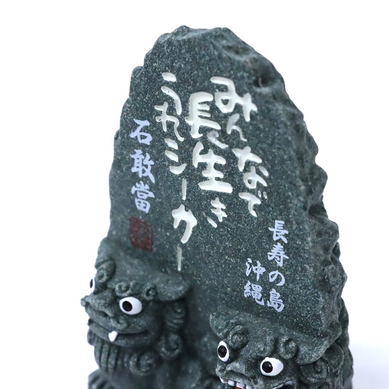 「みんなで長生き うれシーサー」の文字が刻まれており、プレゼントにも最適です