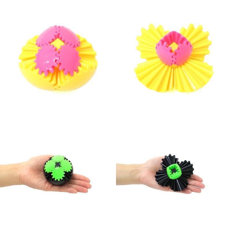 カラフルな2色のギアで形の変化を飽きることなく見ていられます