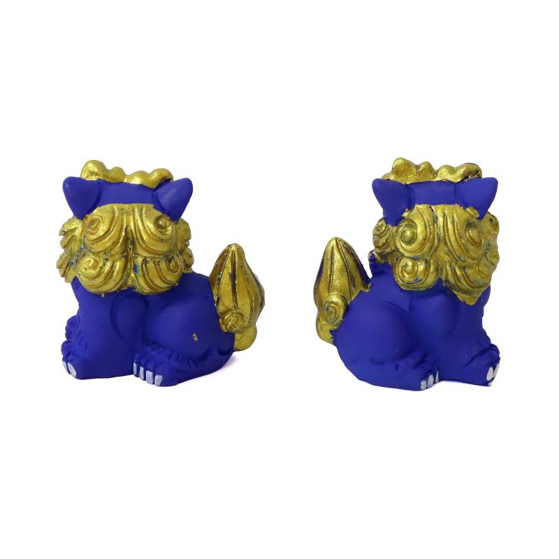 横向きに座り正面を向いたポーズの魔除け獅子。